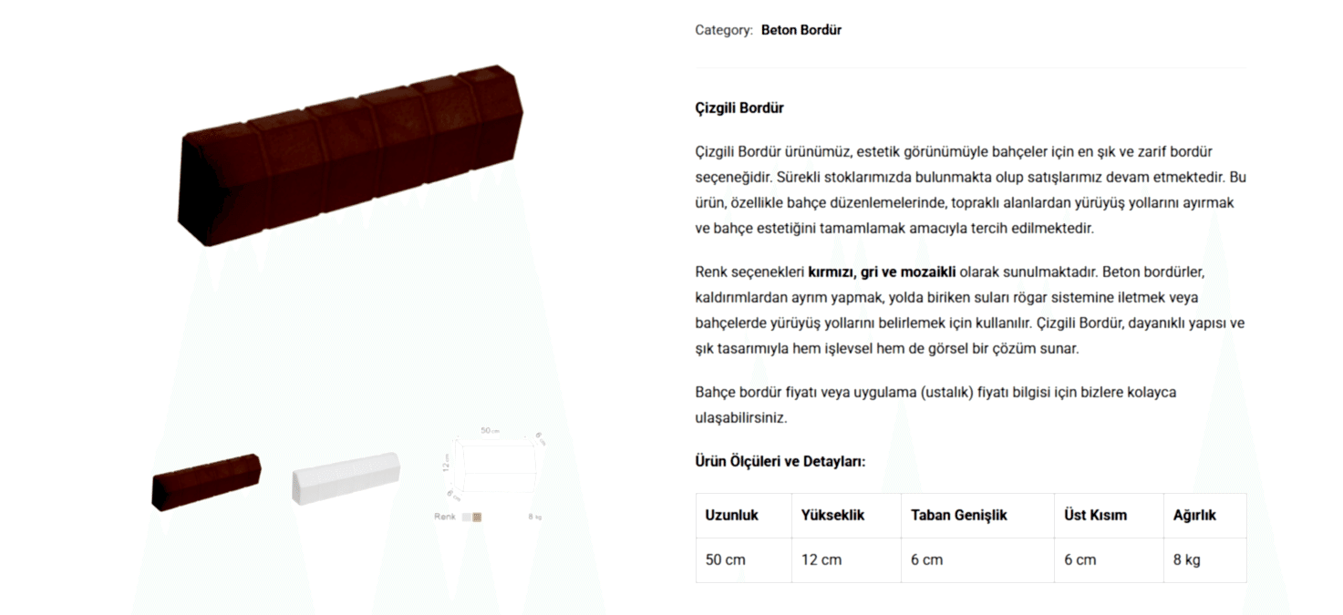 Dekoratif Çizgili Bahçe Bordürü 50cm Uzunluk